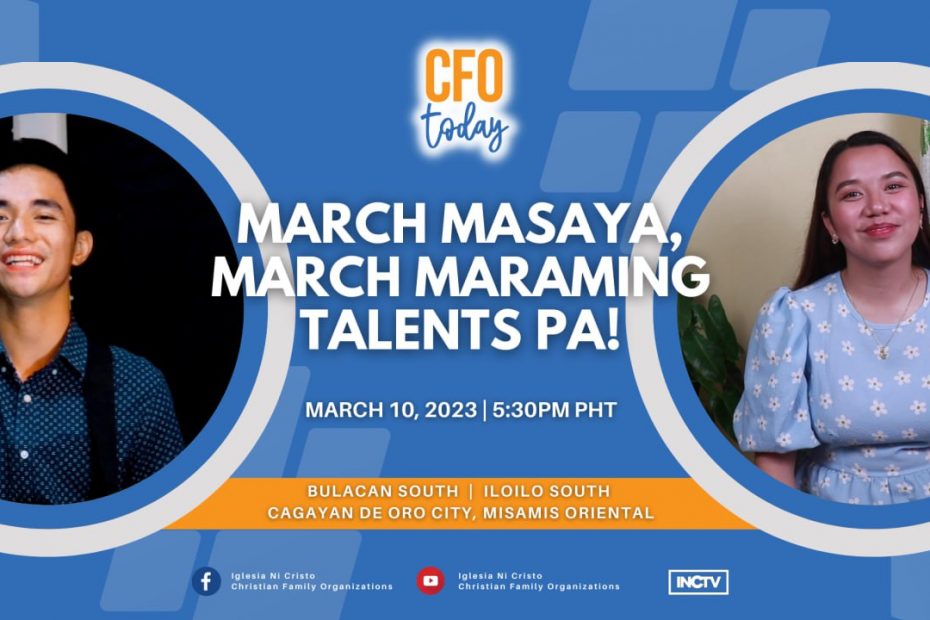 Gusto mo bang mapa-sing along sa mga INC Original Music at mainspired sa talents ng ating mga kapatid? Tune-in on #CFOToday dahil dito sa Breaktertainment March masaya at March maraming talented brethren pa ang mawiwitness natin from different Districts. Make your weekend fun and exciting! So don’t miss it! #CFOPlaylist #INCPlaylist #Music #Break #CFO #INCOriginalMusic #ChristianFamilyOrganizations Please SUBSCRIBE to, LIKE, SHARE, and FOLLOW our Official… Read More »CFO Today Breaktertainment | March 10, 2023 | Friday | 5:30PM PHT